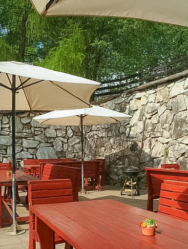 Nabízíme prostornou jídelnu (140 m2), kterou lze využít také jako společenskou místnost s posezením, barem, kulečníkem i dětským koutkem pro skupiny s dětmi a další prostorná místnost jako klubovna.